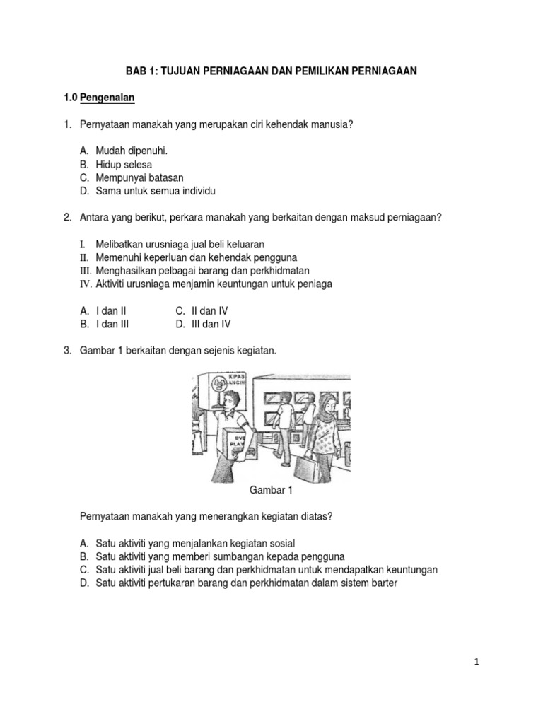 Bab 1 Tujuan Perniagaan Dan Pemilikan Perniagaan Pdf